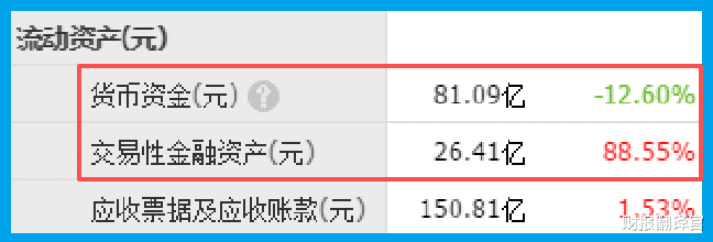 公司账上趴着的货币资金高达81.09亿!与此同时,它用闲置资金购买了26.41亿的理财产品。这说明公司现金流极其充裕,根本不差钱。